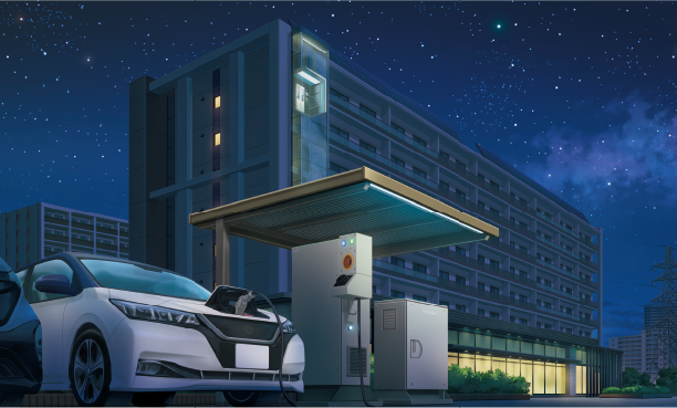 停電でもエレベーターは電気自動車で動く
