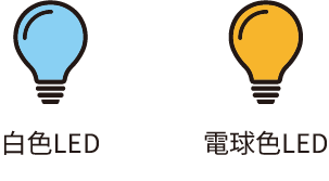 天井照明色は、白色と電球色の二種類からお選びいただけます。