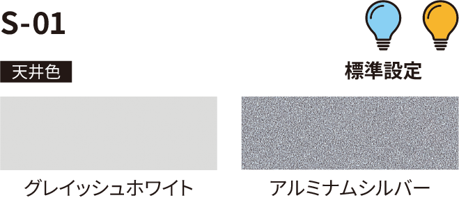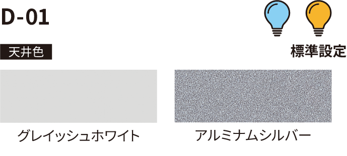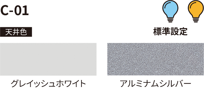 ※ C-01、S-01、D-01天井は天井色をグレイッシュホワイト、アルミナムシルバーの二色からお選びいただけます。画像はグレイッシュホワイトです。