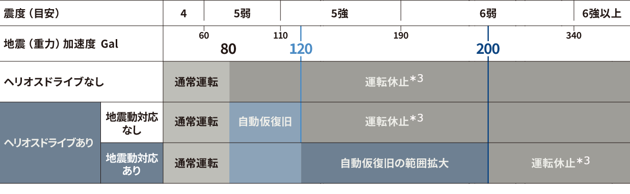 専用の地震感知器などを採用することにより、ヘリオスドライブの自動での運転再開範囲を拡大できます。