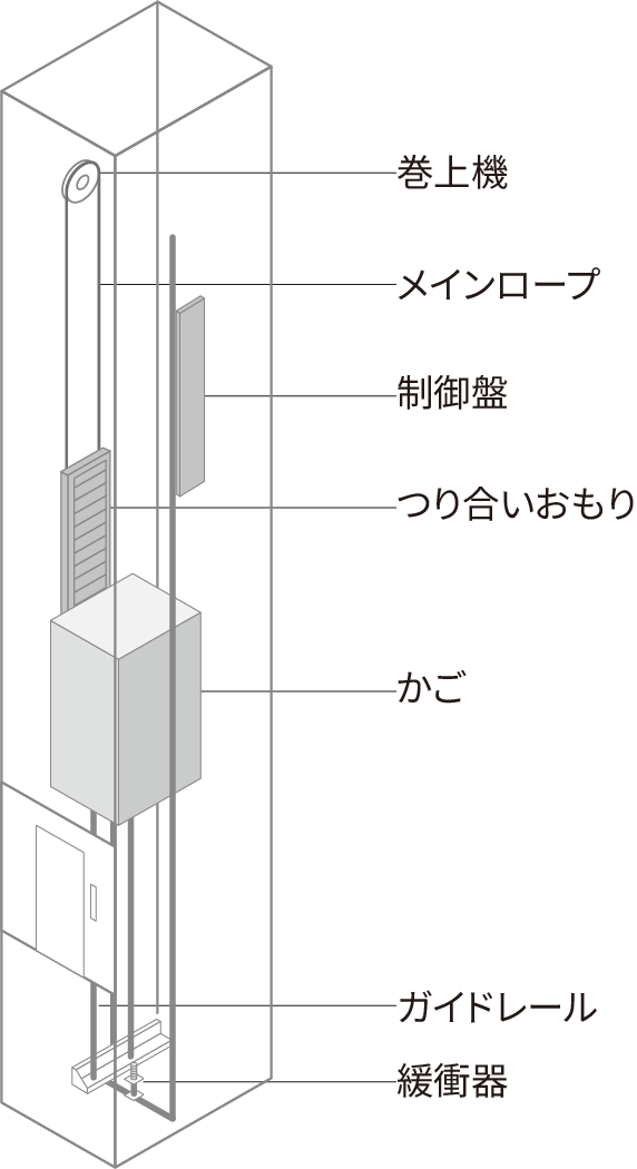 主要機器である制御盤と巻上機を頂部に配置することで、水害時の浸水による被害を最小限に抑えられます。