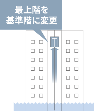 大雨などによる冠水に備え、最上階を基準階に変更し、運転を継続します。