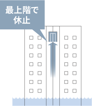 大雨などによる冠水に備え、退避階(最上階)に移動後、運転を休止する設定ができます。
