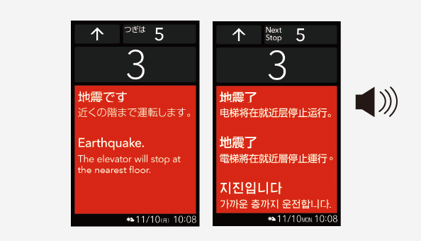 本震後、6回のエレベーター停止を伴う余震が発生しましたが、ヘリオスドライブにより運転再開し、復旧時間を大幅に短縮。