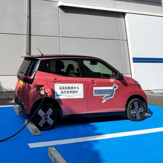 高層ビルやマンションにおける、停電時にエレベーターなどの共用部設備が使用できなくなる事態を回避するため、非常時電源として蓄電池などを整備する動きが進んでいますが、導入コストなどが課題となっています。日立ビルシステムは、電気自動車をビルの非常時電源として活用できる給電を行い、継続利用を可能とするシステムを開発し実用化を進めています。