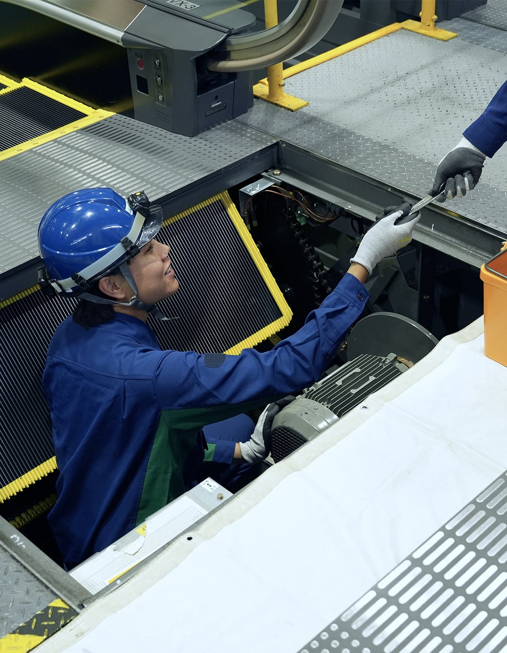 フィールドエンジニアとして、昇降機のメンテナンスや定期点検、お客さまへ部品交換の提案や部品交換対応、緊急時の対応を担当。「チームで荒川区全域を担当。万一、個人で困難な局面があっても必ずチームの力を結集し解決することができるのが心強いです。」