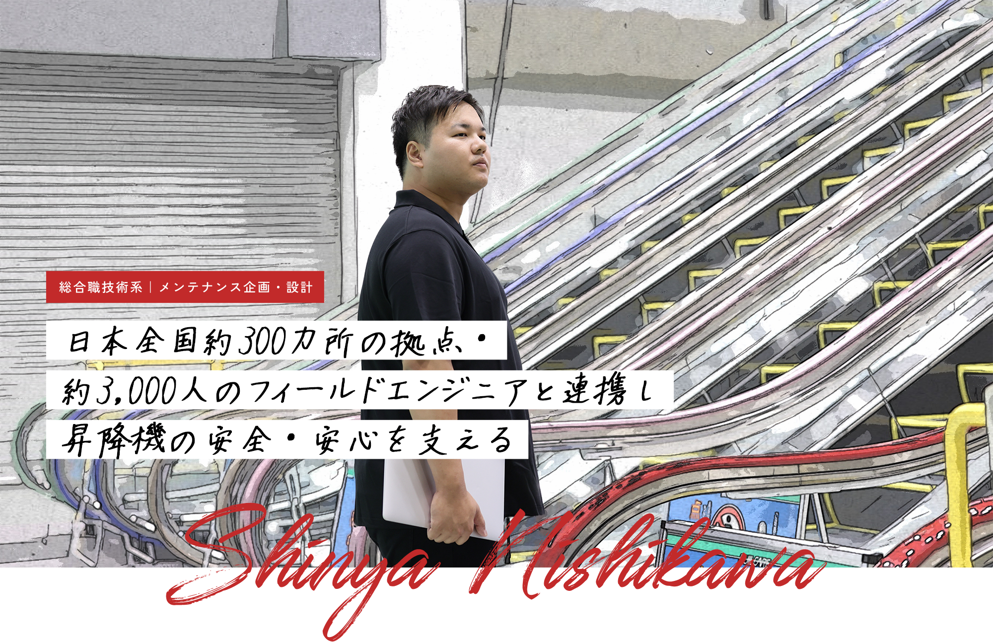 ビル設備全般のメンテナンスを担うフィールドサービス技術部に所属し、主に昇降機を担当。「実際に現場でメンテナンス作業を行う全国のフィールドエンジニアに向けて、昇降機の品質管理や安全性向上に関する施策の取りまとめ・推進を行う仕事にやりがいを感じています。」